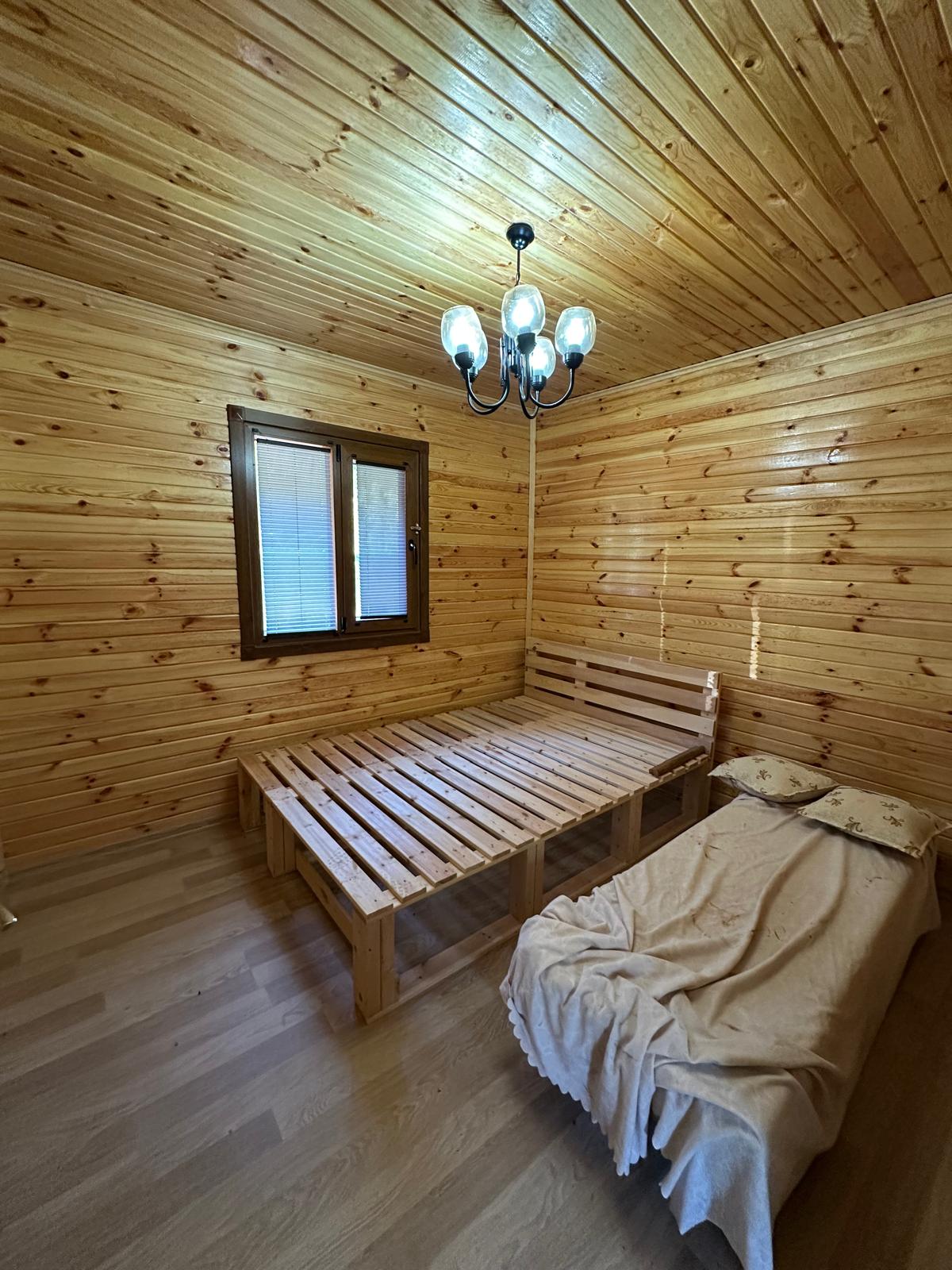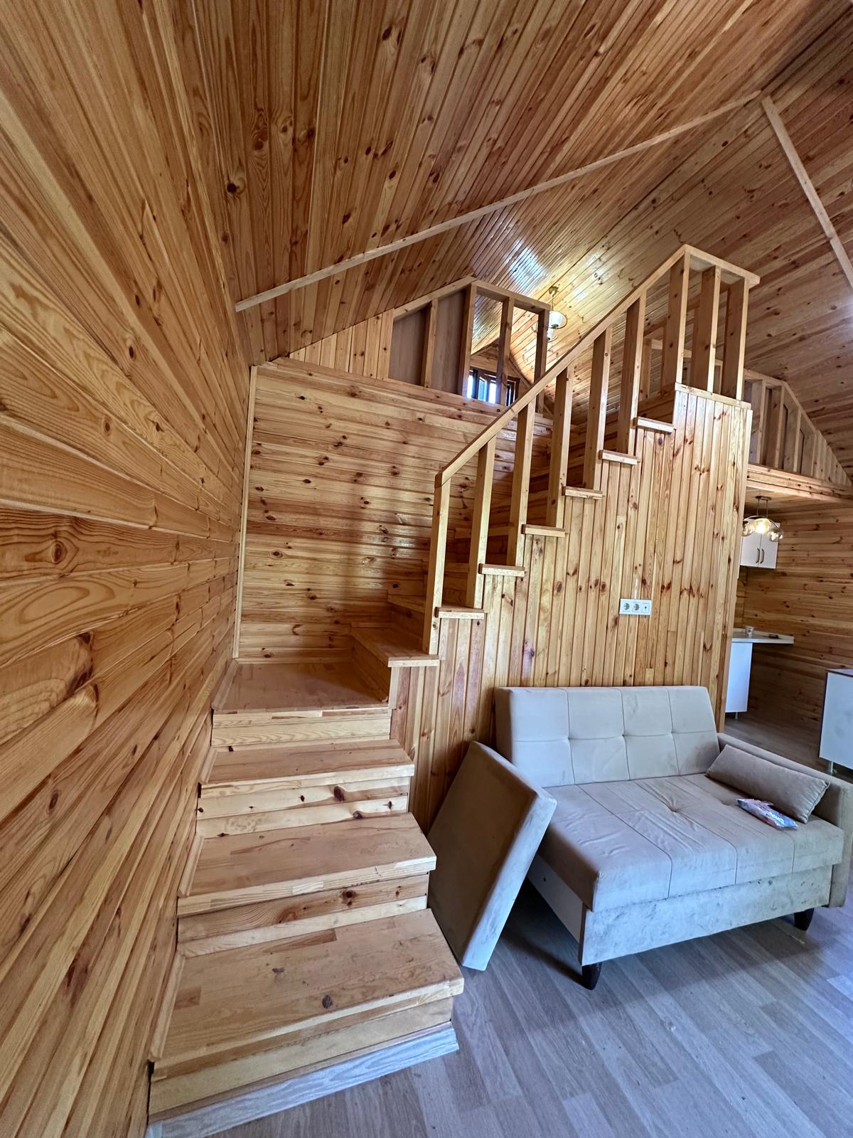 İçinde 70 m² büyüklüğünde, sıcacık bir bungalov bulunuyor.